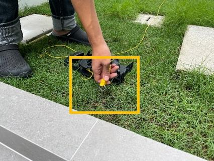 1. นำสายสีดำต่อกับเครื่อง และคีบหลักดินที่ต้องการวัดค่า