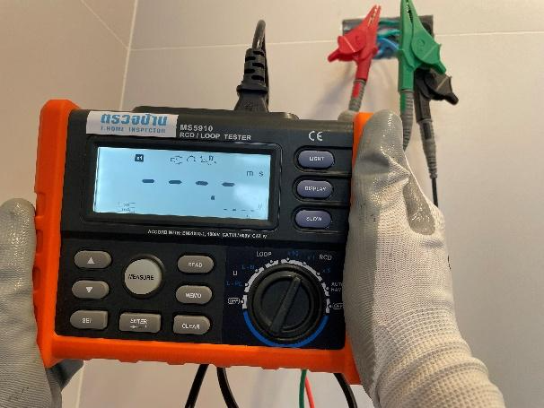 โดยในการตรวจสอบจะใช้เครื่อง RCD/Loop tester มีวิธีการดังนี้