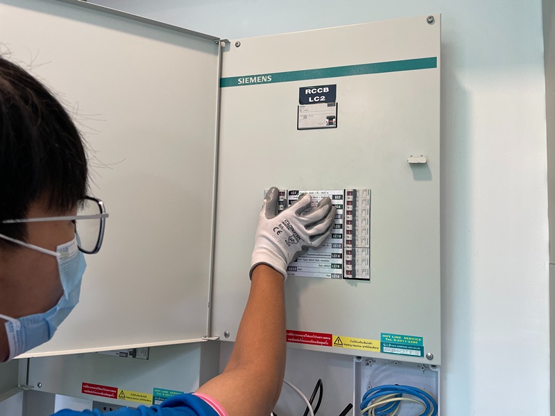 1. สวมถุงมือกันไฟฟ้าและปลดเบรกเกอร์ลง