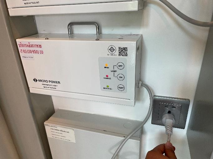 3. กดปุ่ม test เพื่อทดสอบการทำงาน หากไฟสว่าง แสดงว่าไฟฉุกเฉินสามารถใช้งานได้ตามปกติ