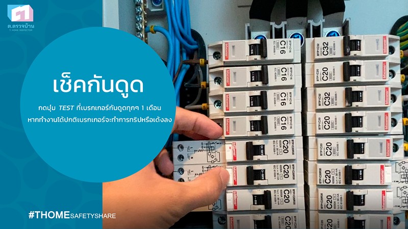 1. เช็คตัวกันดูด ทุกๆ 1 เดือน ควรตรวจสอบเบรกเกอร์กันดูด ด้วยการกด TEST ที่ตัวเบรกเกอร์กันดูด