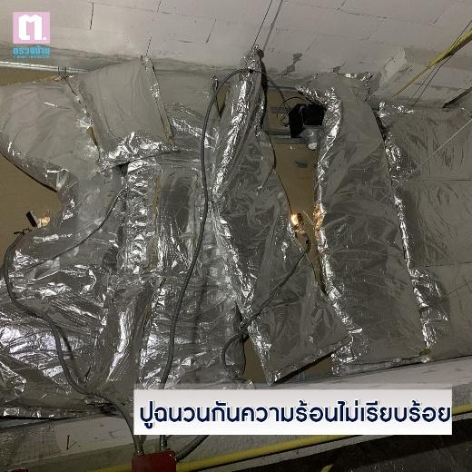 เศษฝุ่นและวัสดุ ท่อพันสายต่าง ๆ ที่ใช้เสร็จแล้วแต่ไม่มีการเก็บกวาดให้เรียบร้อย ทิ้งเป็นเศษขยะบนหลังฝ้า