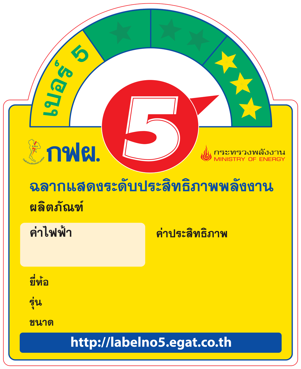 แต่ฉลากแบบใหม่ จะเริ่มต้นด้วยเลข 5 แต่เพิ่มเติมคือ มีดาว 3 ดวง โดยดาวแต่ละดวง จะแสดงถึงความประหยัดไฟมากขึ้นประมาณ 5-10% หากมีดาวเยอะ แสดงว่ายิ่งประหยัดไฟ โดยมีการปรับหน้าฉลาก ให้เห็นถึงค่าไฟฟ้าที่ใช้ในแต่ละปี รวมถึงค่าประสิทธิภาพให้ชัดเจนยิ่งขึ้น โดยทั้งสองค่านี้สามารถนำไปใช้ประกอบการตัดสินใจสำหรับการเลือกซื้อเครื่องใช้ไฟฟ้าที่อยู่รุ่นใกล้ๆกันได้ ด้านล่างของฉลาก จะมีเว็บไซต์ของกฟผ. http://labelno5.egat.co.th ที่รวบรวมรายละเอียดของผลิตภัณฑ์ที่ผ่านการรับรองจากกฟผ. เพื่อให้ผู้บริโภคสามารถเข้าไปศึกษาเองได้ รวมถึงมีรายละเอียดของฉลากต่างๆ