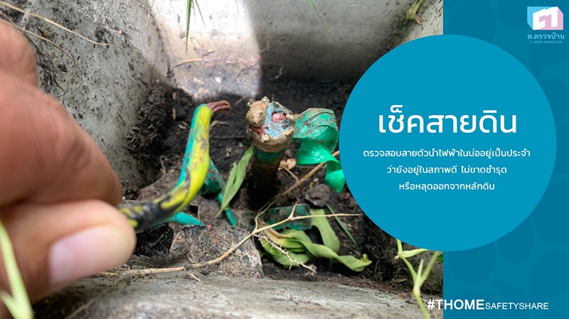 4. ตรวจสอบสภาพสายไฟในบ่อดินอยู่เสมอ ต้องไม่ขาดชำรุด หรือหลุดออกจากหลักดิน