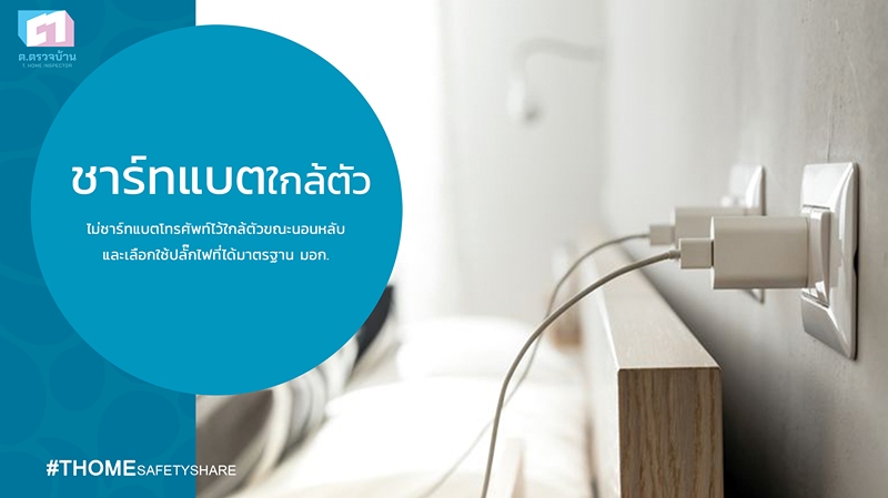 5. ไม่ควรชาร์ทแบตโทรศัพท์ไว้ใกล้ตัวขณะนอนหลับหรือนำปลั๊กไฟมาไว้ใกล้ตัว และควรใช้ปลั๊กไฟที่ได้มาตรฐาน มอก.