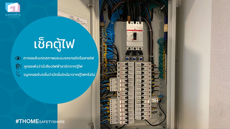 2. เช็คตู้ไฟ ใช้ประสาทสัมผัสทั้ง 3 ของเรา ตาดู หูฟัง จมูกรับกลิ่น
